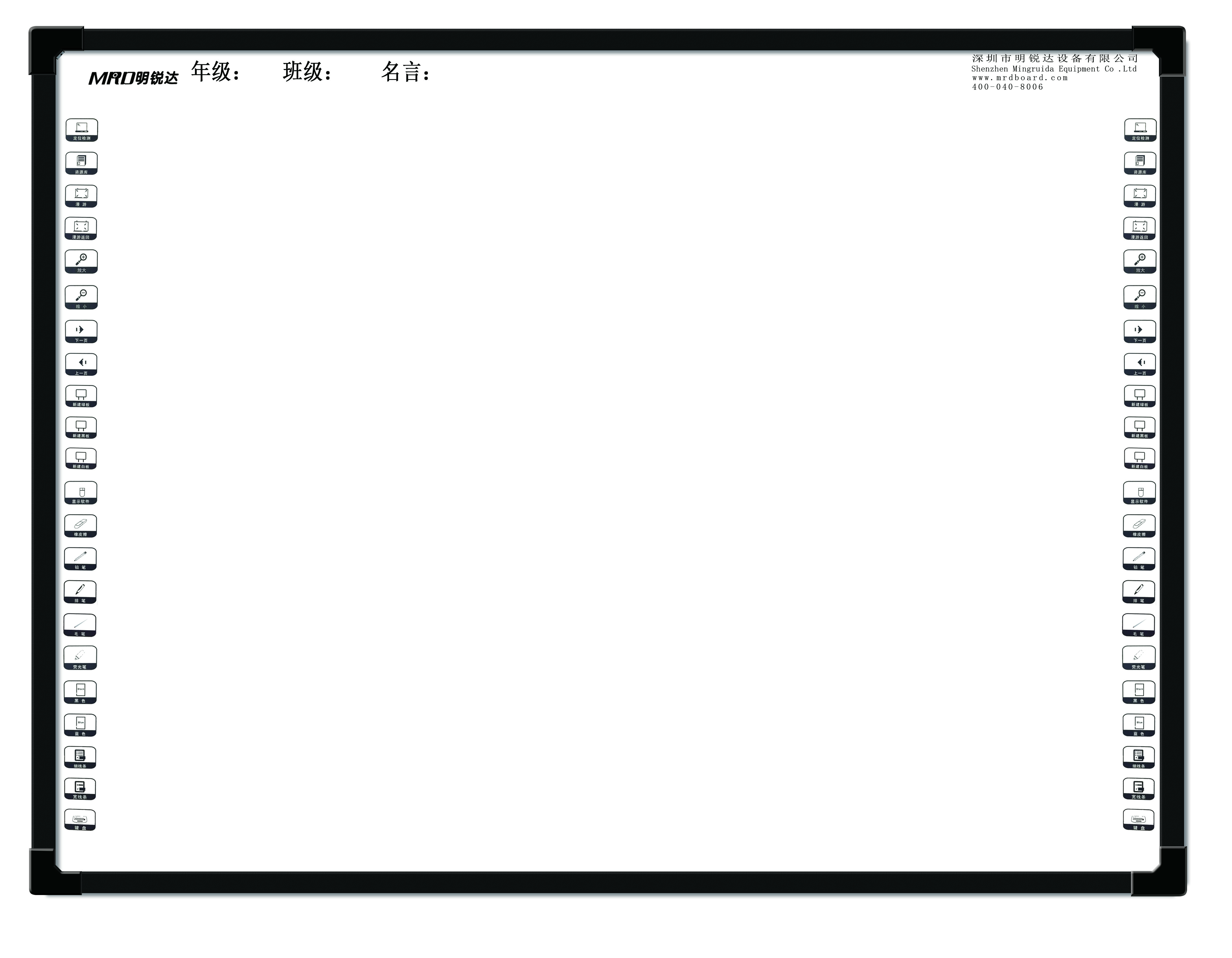 參數(shù):1、白板尺寸80英寸-115英寸,觸摸感應(yīng)方式:光學(xué)影像感應(yīng)技術(shù);一體成形鋁合金邊框、壁厚15MM。2、2點(diǎn)觸控,觸摸感應(yīng)方式:次代光學(xué)影像感應(yīng)技術(shù),是由左上、右下、2個(gè)角或4角各內(nèi)置一個(gè)攝像頭和紅外發(fā)射管,三個(gè)邊框嵌入反光條組成封閉結(jié)構(gòu)的觸摸框。板間以Ffc線接插件方式連接,支持直接插拔安裝及拆卸,方便后期維護(hù)檢修。3、分辨率:32767×32767;4、觸摸精度±3mm;支持同時(shí)觸摸點(diǎn)數(shù)